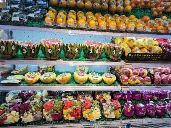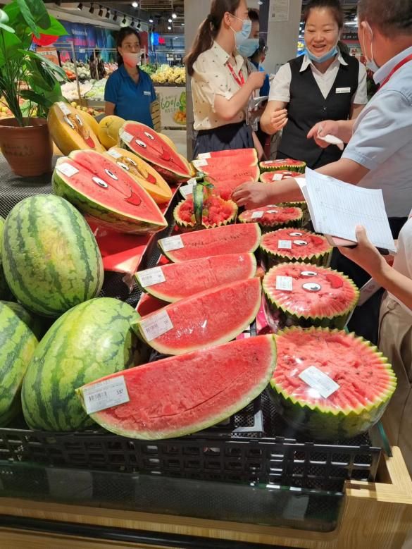 瓜類水果展露笑容、用各種造型,吸引顧客駐足、觀賞和挑選。各門店均從試吃、便捷、服務(wù)等細(xì)節(jié)處入手,通過擬人化處理。讓瓜果層層疊疊,組成領(lǐng)“鮮”一步的鮮果盛宴。