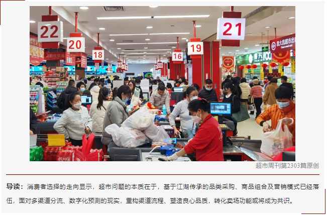 消費(fèi)者選擇的走向顯示,超市問題的本質(zhì)在于,基于江湖傳承的品類采購、商品組合及營銷模式已經(jīng)落伍,面對多渠道分流、數(shù)字化預(yù)測的現(xiàn)實(shí),重構(gòu)渠道流程、塑造良心品質(zhì),轉(zhuǎn)化賣場功能或?qū)⒊蔀楣沧R。