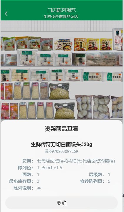 生鮮傳奇建立了許多標準,第一個就是我們在商品的棚割表,大家可以看到這張圖,這是我們把所有的商品都數(shù)字化,在我們的系統(tǒng)里面建立了商品的陳列圖,門店只需要按照陳列圖去陳列就可以了。