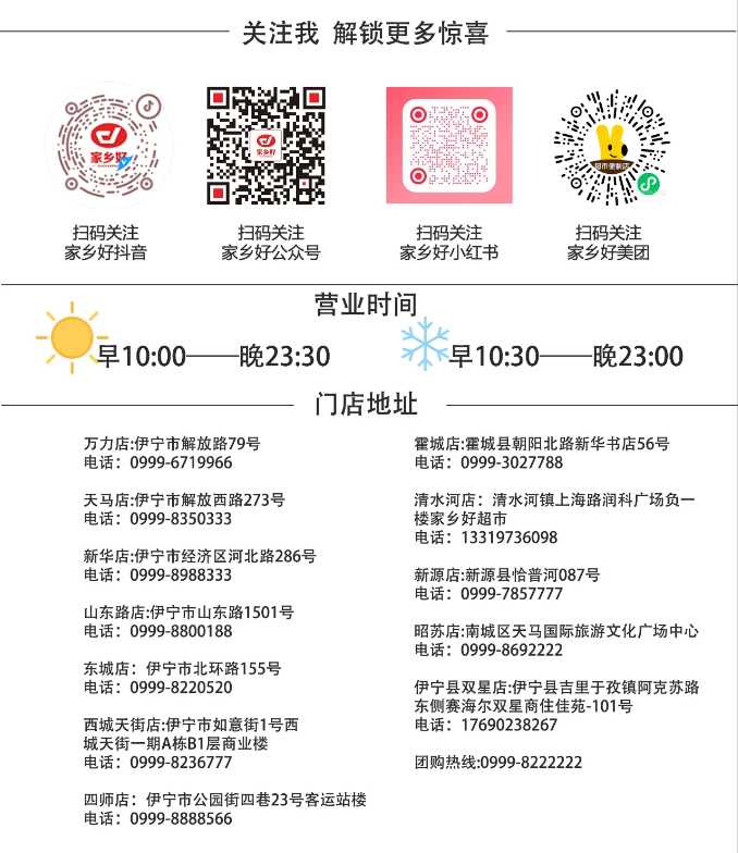地址:新疆伊犁州伊寧市開發(fā)區(qū)山東路家鄉(xiāng)好集團 郵編:1615241386@qq.com 電話:0999 - 8222222